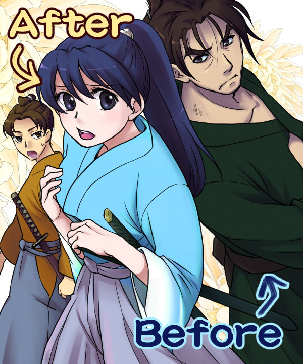 (3キャラセット) 不破四十郎:浪人。小野派一刀流の使い手。たまたま通りかかった藩のお家騒動に巻き込まれ菊姫と入れ替わる。