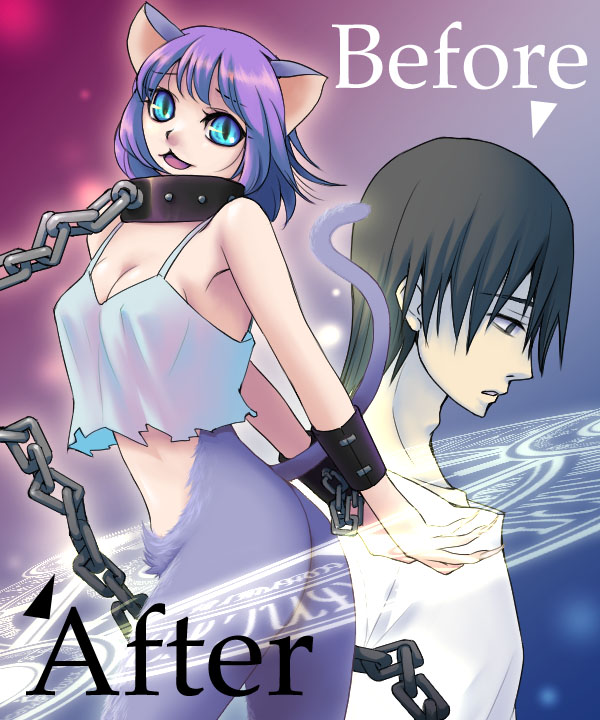 『硬貨を入れると、性別が逆転した上、泉水の精霊の愛人にされてしまう』泉に硬貨を投げ入れてしまった青年。本当に女性化(長髪、グラマー、少しドジっ娘)になった上、金髪少年風の精霊に処女を奪われてしまう。