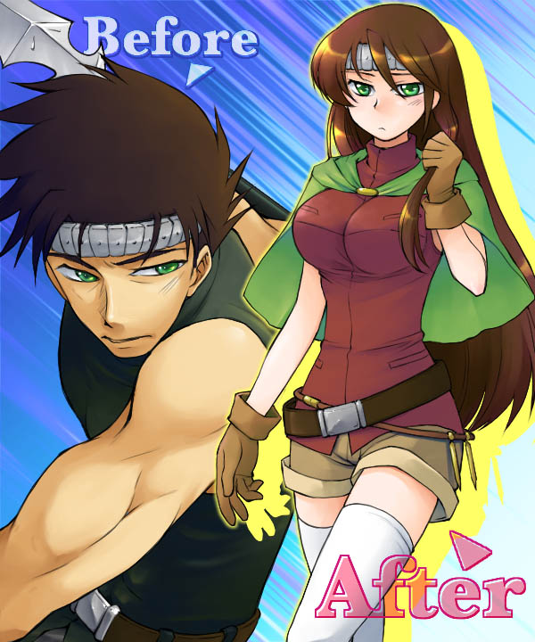 かつての闘技場の覇者で、二十六歳の槍使い。自分を打ち負かした17歳の美少年剣闘士に勝とうと修行を積みかさせるが、粗悪な薬草を掴まされて、性転換してしまう(鮮やかな栗毛のストレートロング、かなりグラマー、軽装且つ女モノの旅の衣装)。既に果たし状を出した後なので、引くに引けずに自分の妹として、来れなくなったことを伝えるのだが、すっかりライバルは美少女になった主人公に惚れてしまい、求愛されてしまうのだった。