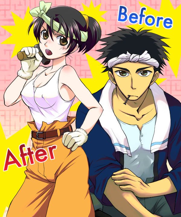 大工一家の若。負けん気が強く、女になった後でも男の作業服で懸命に働いていく。