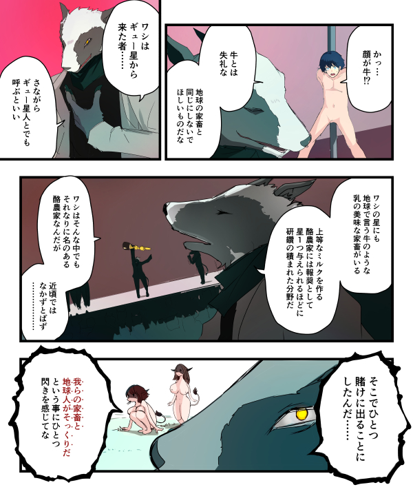 牧場視察にやって来た主人公とヒロイン。しかしそこの牧場主の正体は、究極のミルクを追い求め人間を乳牛にする為にやって来た宇宙人であった。