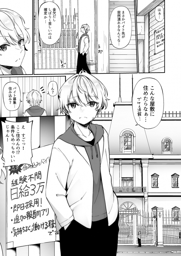 バイト先を探していた主人公がでかいお屋敷に貼られた求人広告を見つけ応募、無事採用されたと思ったらメイド衣装を着せさせられ女体化、ふたなりのお嬢様に犯されるお話です。お嬢様の命令に翻弄される主人公がいい感じです。嫌々お嬢様の指示に従うものの、快感には逆らえず、女の体に魅了されていく様子は丁寧に描かれており、快感堕ちの心情をうまいこと表現しています。清楚な見た目なのに強気な性格なヒロインのギャップ萌えがこの作品のオススメポイントです。」
