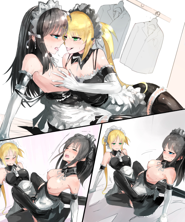 ・二人とも某作品のメイド服を着用、金髪は一切脱がさず、黒髪は胸を出す程度に脱がす