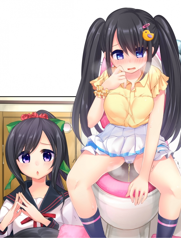 妹の妹にされる元兄。フリルのブラウスにミニスカートを履かされて、初めての女の子としてのおし×こに赤面。髪は黒髪ツインテール。