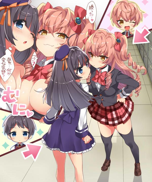 ・黒髪巨乳と金髪貧乳のキス(横顔アップ)を1コマと貝合わせを2コマ(内1コマは同時イキの場面)