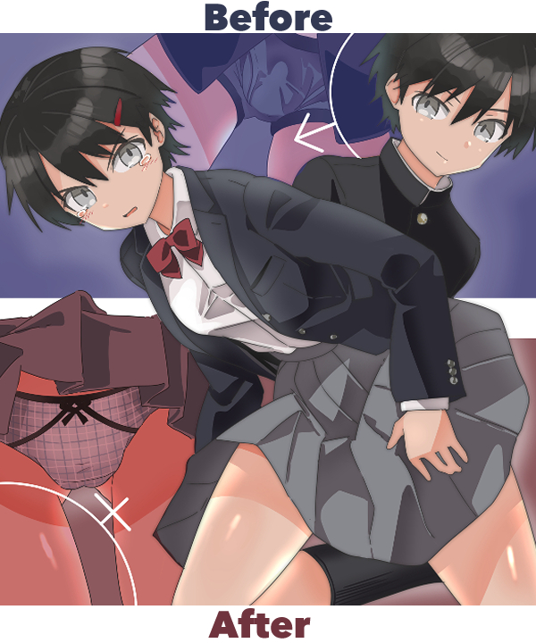 水曜イラスト企画 巨乳ミニスカ小悪魔系JKとの入れ替わり つけおさん
