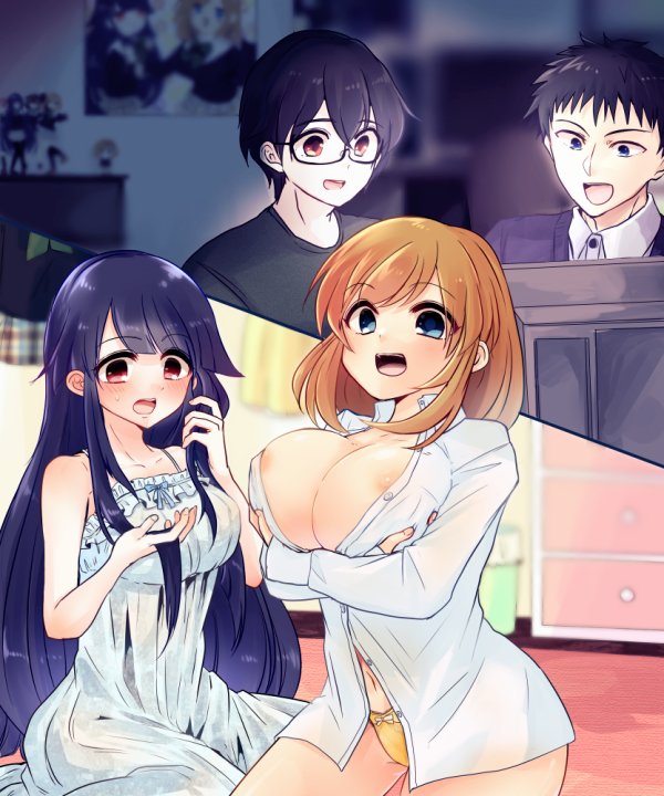 After A セミロングの明るめの茶髪で胸がとても大きい活発そうな女の子に。下はパンツのみ、上は裸Yシャツで谷間を強調するようにボタンが外れ、胸を強調するような姿勢をしている。 B 紫寄りの黒髪ロングでAほどではないが胸が大きい女の子に。ネグリジェを着ており、胸を揉むか髪を触るなどして自分の変化に驚いている。 起きた後に部屋に女子の制服がかかっていたり、内装が女子の部屋っぽくなっている。」