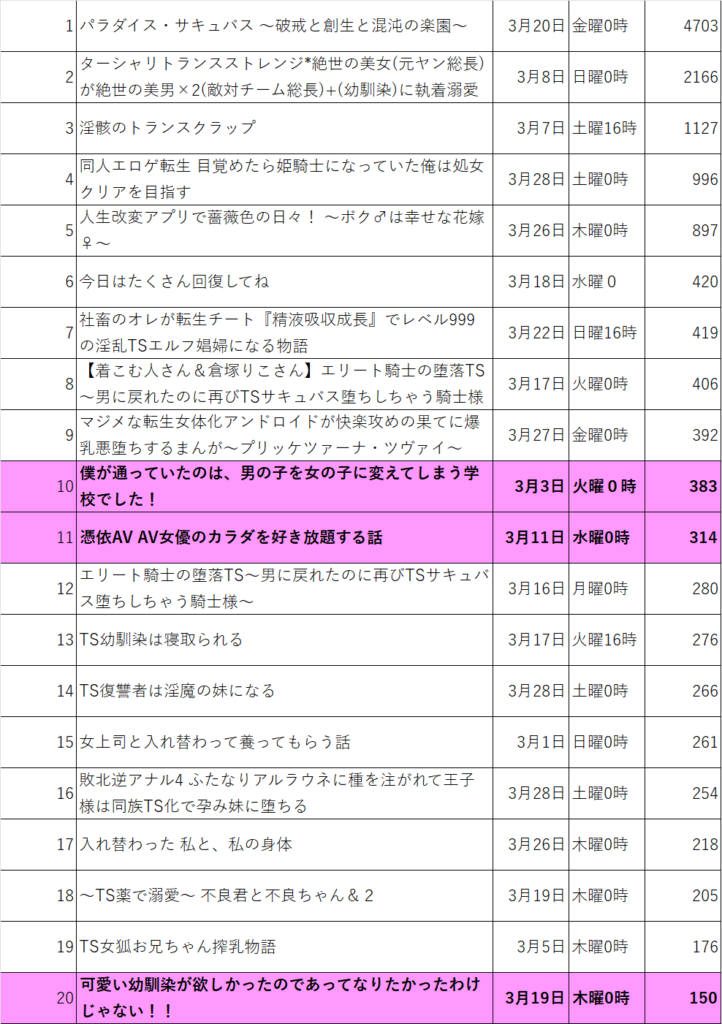 【速報】2026年3月 発売初日に売れたTSF電子同人ランキングベスト20