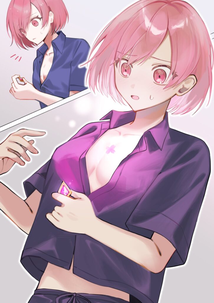 数か月前「種」が飛び込んだ胸の部分に、ピンク色の、蕾のような形をした光が現れる。